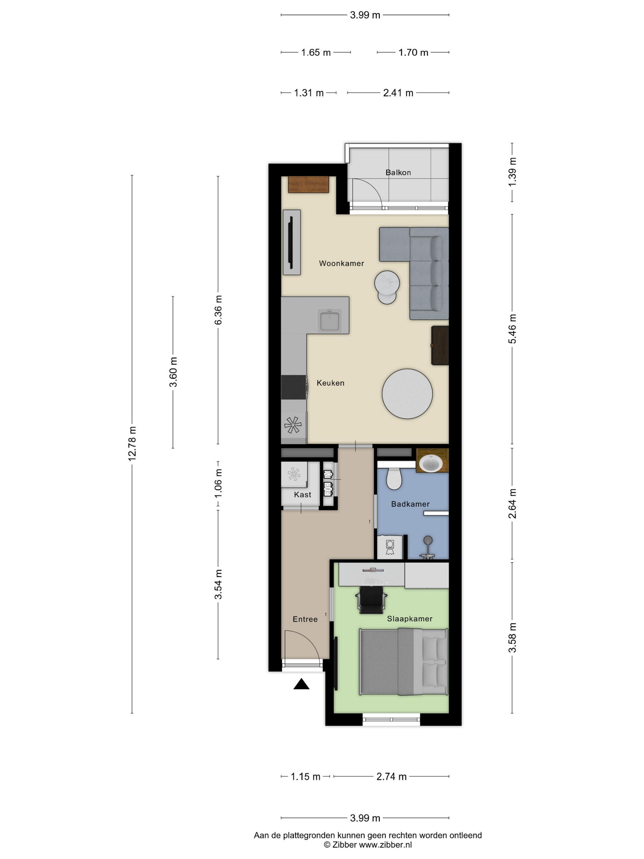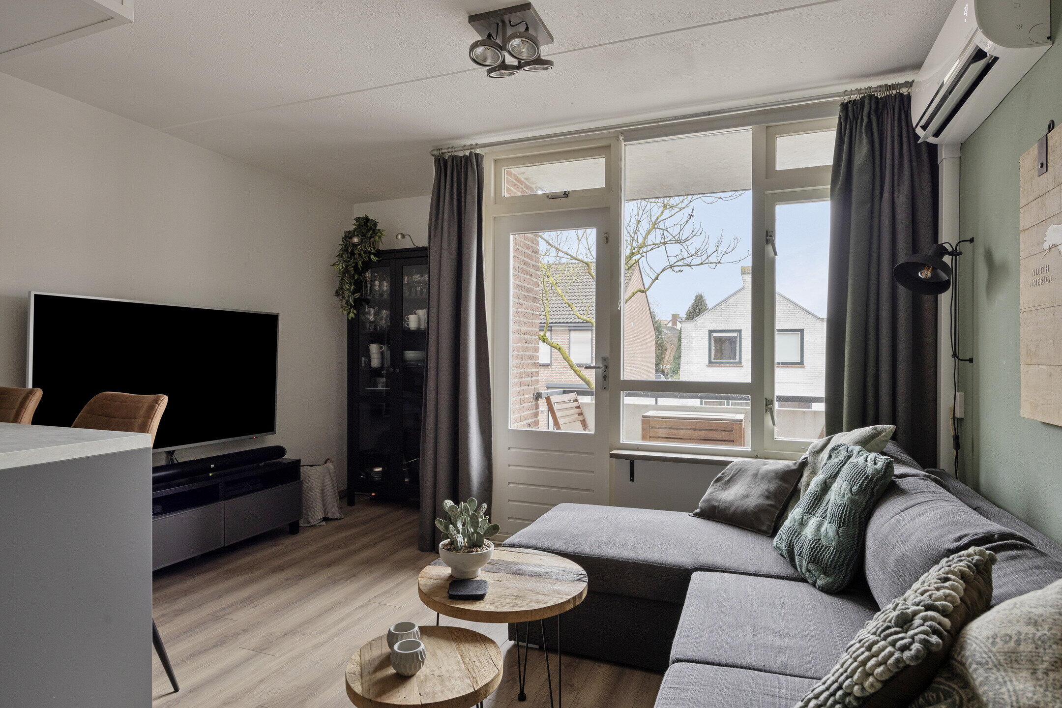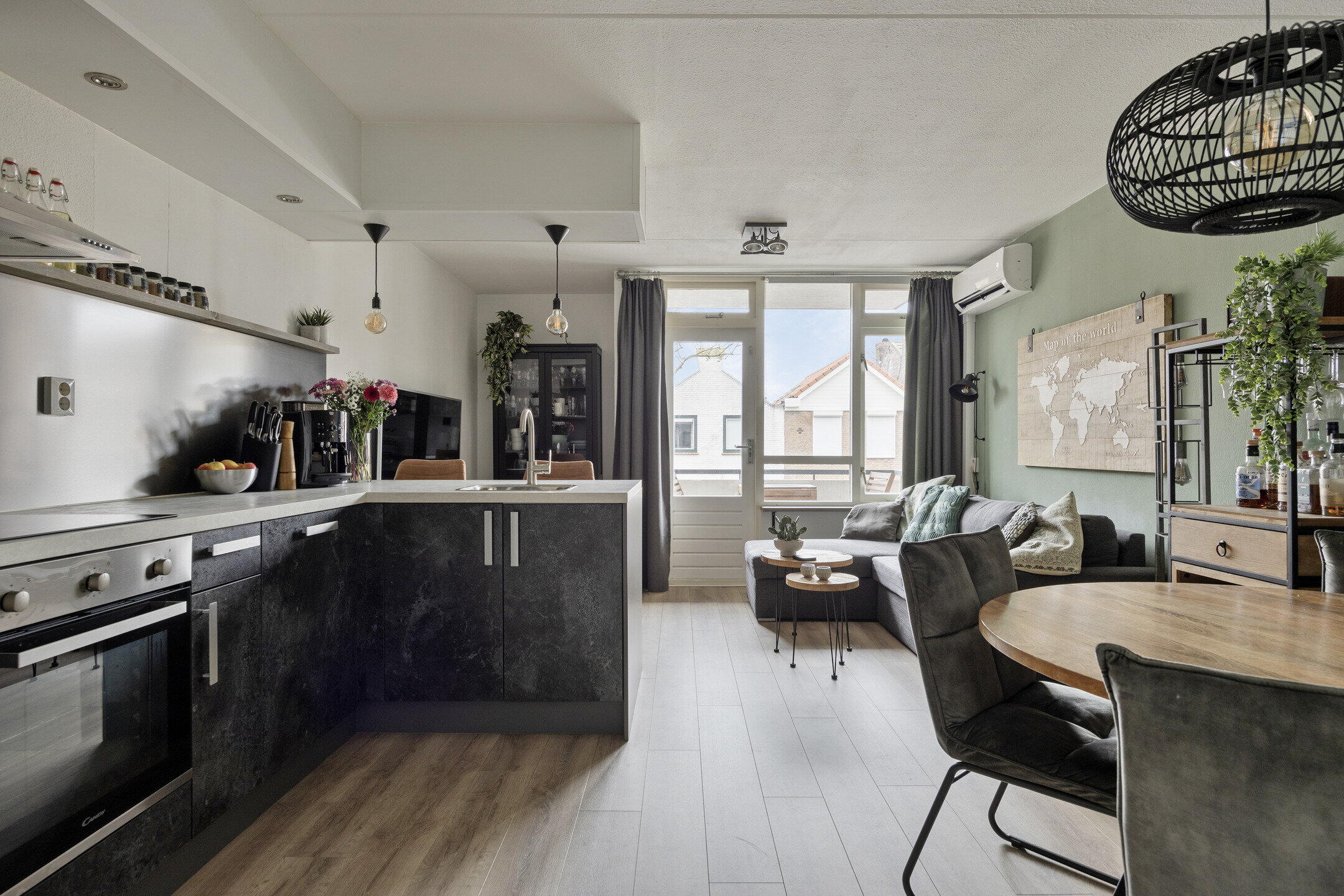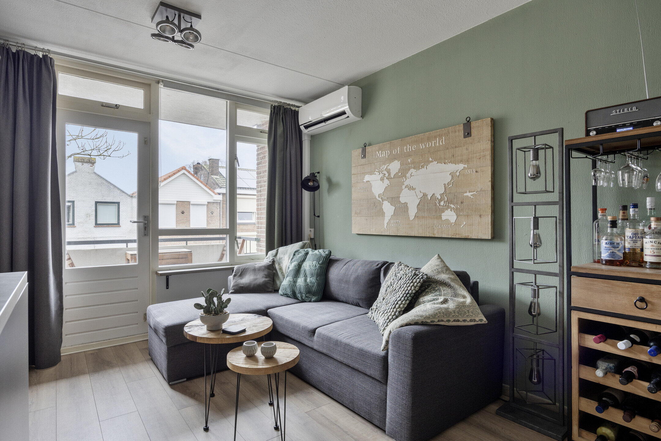 De woonkamer is een fijne, lichte ruimte waar je direct mogelijkheden ziet. Er is een gezellige zithoek waar je comfortabel je bank kunt plaatsen. Dankzij de deur naar het balkon en de grote raampartij ernaast geniet je van een prettige lichtinval. De aanwezige airco (verwarmen én koelen) zorgt het hele jaar door voor een aangenaam binnenklimaat. Daarnaast is er een infrarood paneel aanwezig als extra verwarmingsbron. Het appartement is volledig gasloos, er is geen gasaansluiting en dus ook geen CV-installatie. Het warme water wordt geleverd via een elektrische boiler. Comfortabel én toekomstgericht wonen dus!